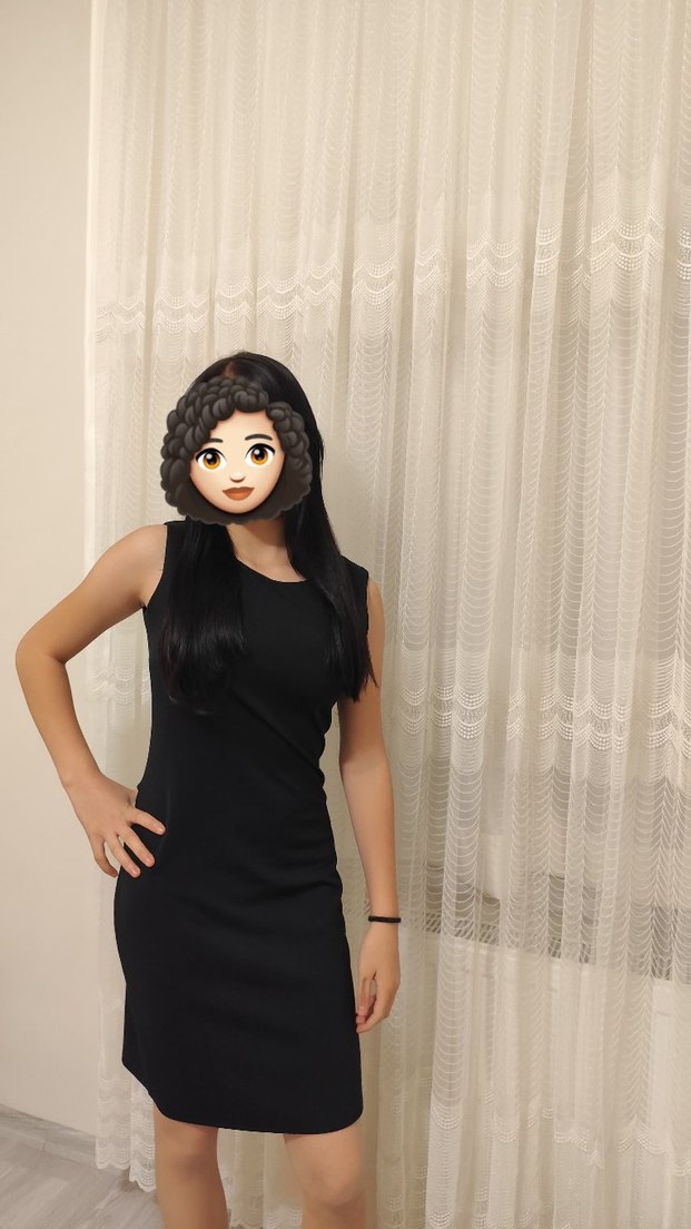 Siyah, v yakalı ve kolsuz bu kalem elbise, ince ve parlak kumaştan yapılmıştır. Minimalist tarzıyla parti ve günlük kullanıma uygundur.
