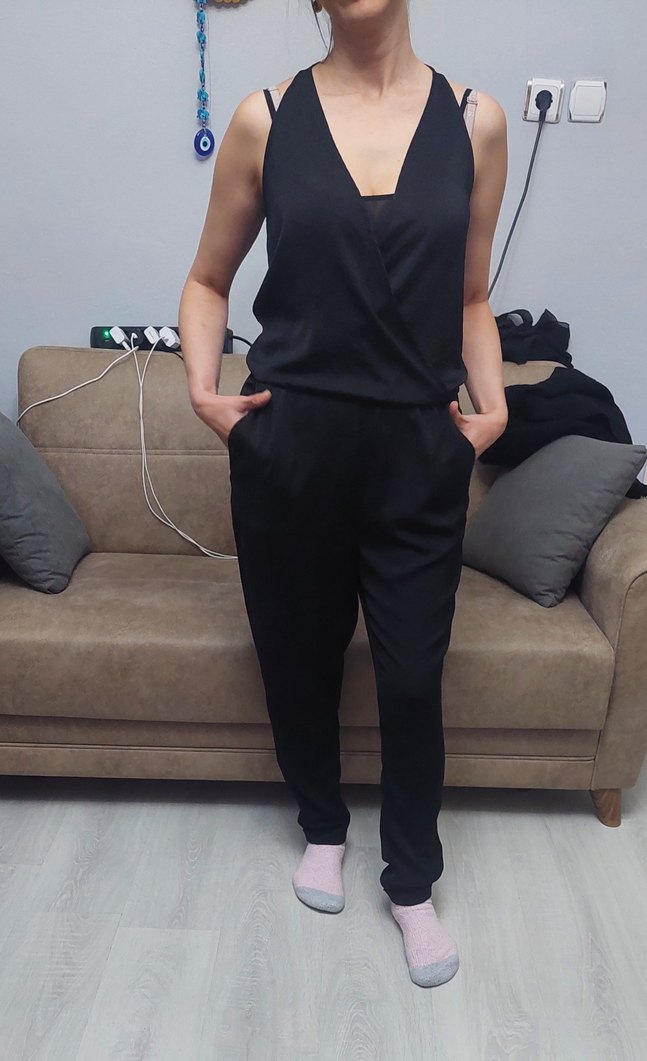 Çok az kullanılmış tertemiz M 38 beden beli lastikli, cepli kadın tulum.... V yaka ve ince askılı, bol kesim midi uzunlukta siyah tulum. Yumuşak sentetik kumaştan, günlük kullanıma uygun rahat ve şık. ✨