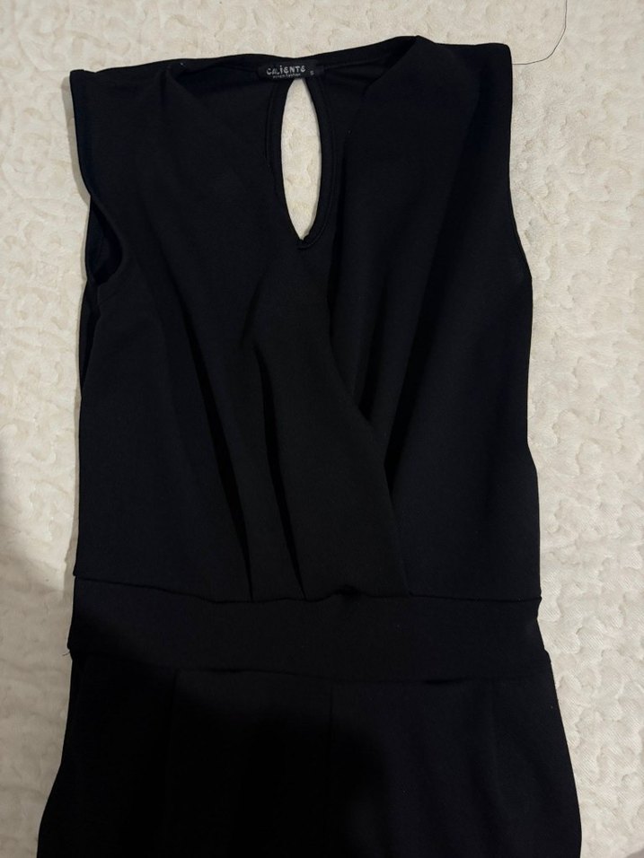 V yakalı, kolsuz ve uzun siyah tulum. Sayılı giyildi defosu yoktur 36 bedendir.
