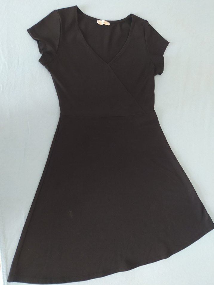 Siyah V Yakalı Kısa Kollu çan elbise