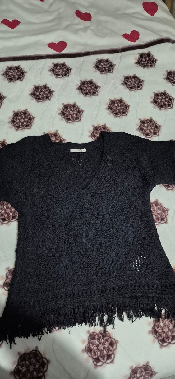 Siyah renk, V yakalı, rahat bir kadın kazak. Günlük kullanıma uygun goth tarzı. S beden olanlarda tercih edebilir.