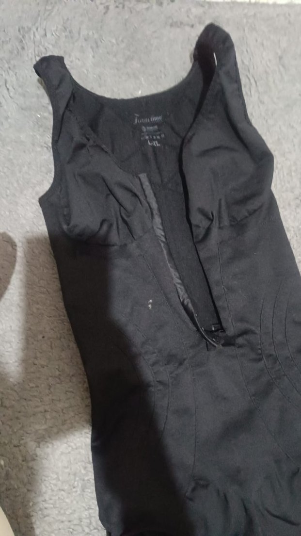 Siyah, kolsuz ve V yakalı bu kadın tulumu, önden fermuarlı ve vücuda oturan kesime sahiptir. Pürüzsüz sentetik kumaştan yapılmış, gotik tarzda ve midi boyundadır.