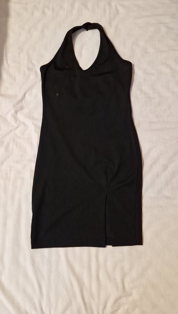 Siyah kolsuz kalem elbise, V yakalı ve midi boyda, cesur ve minimalist tarz için uygundur. Romantik buluşmalar için ideal.