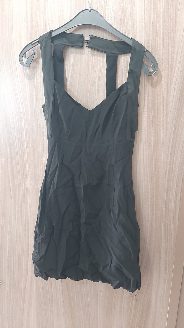 Siyah renkte, V yakalı, kolsuz ve drapeli tasarıma sahip midi boyu abiye elbise, gotik parti tarzı için uygun. sırti açik . giymedim taşinma nedeni için satiyorum