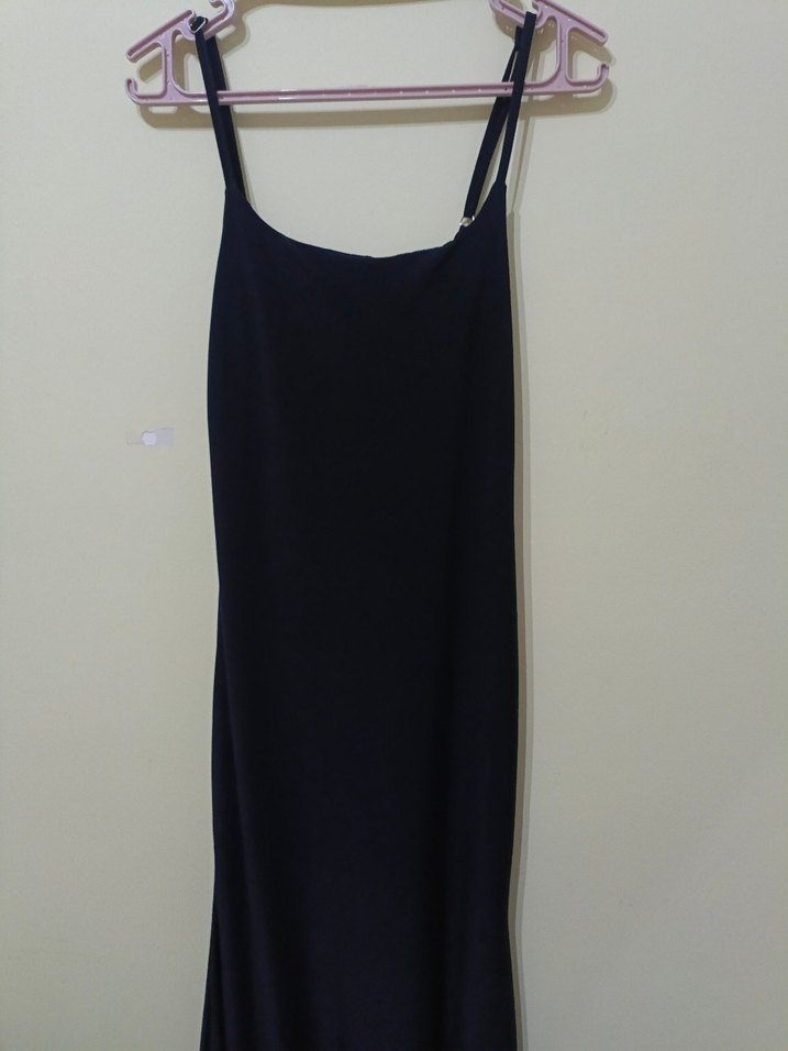 Siyah, saten dokulu, kolsuz ve v yakalı bu midi elbise, drapeli ve vücuda oturan kesimiyle minimalist ve şık bir tarz sunar.