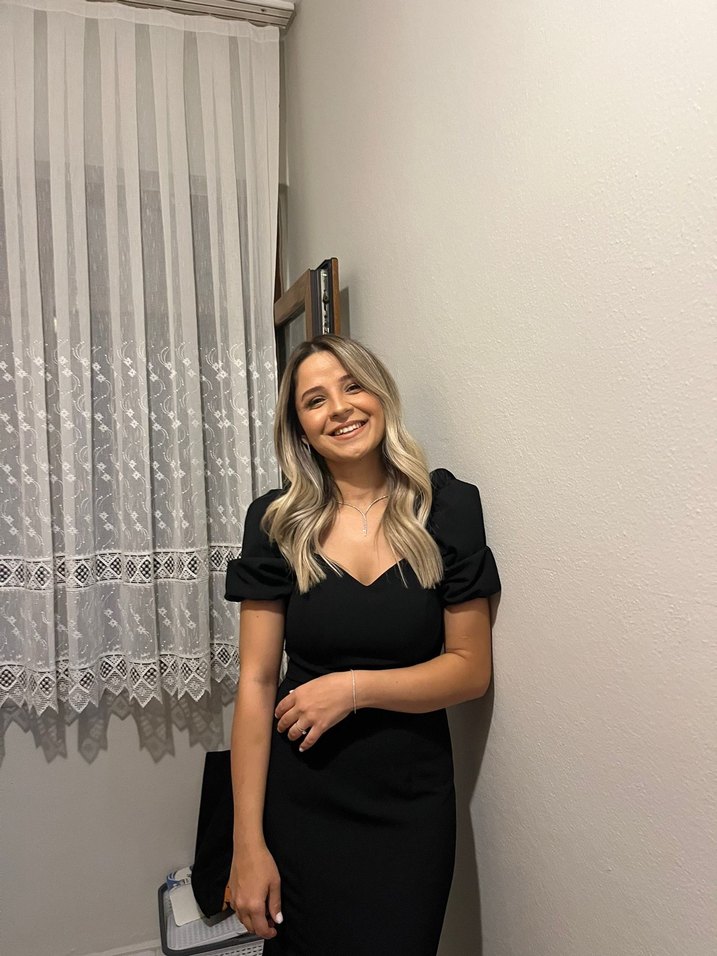 Siyah V Yakalı Midi Mezuniyet Elbisesi