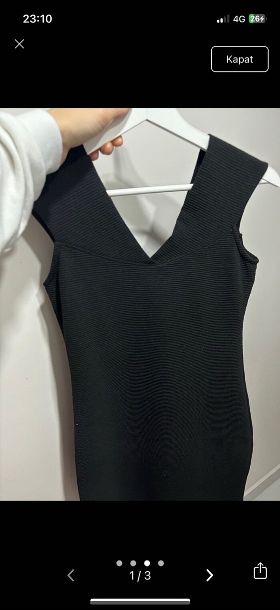 Siyah, kolsuz, V yakalı, midi uzunlukta, vücuda oturan örgü elbise, yumuşak sentetik kumaştan minimal sokak stili için uygun.