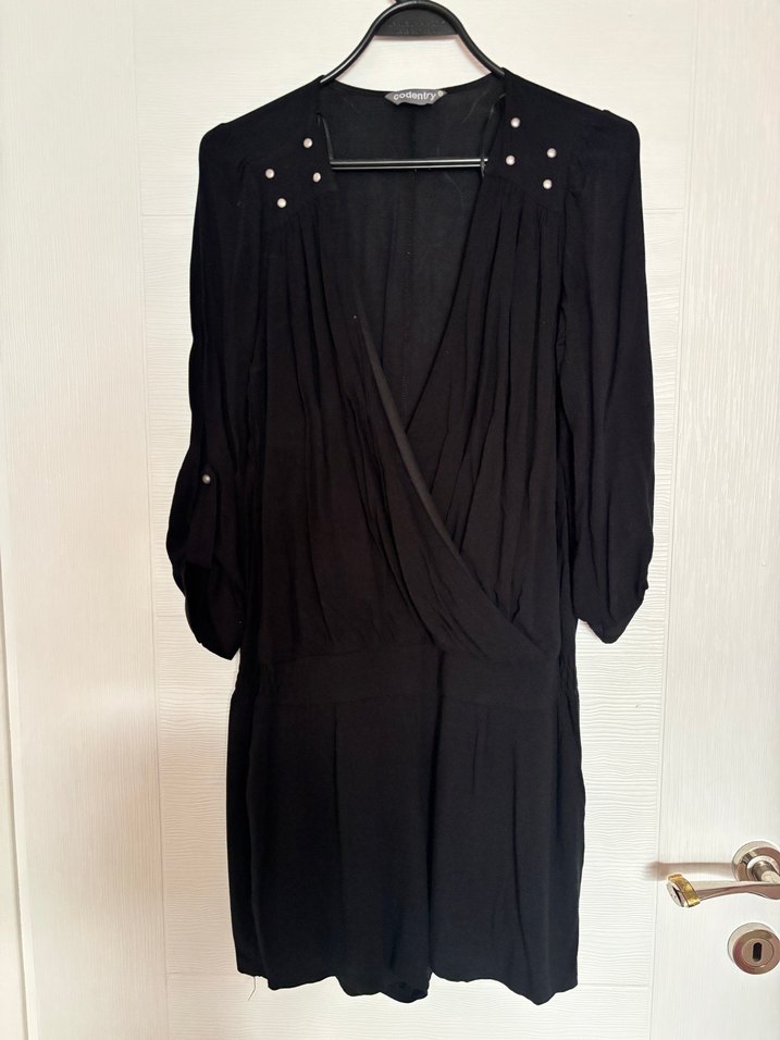 Siyah mini dirsek kollu, V yakalı, bol kesim ve drapeli tulum.Omuzlarda metal detaylar bulunur. Günlük gotik tarz için uygundur. Şort kısmı astarlıdır çok rahattır orijinal adil ışıktır kaliteli uygun fiyata ürünler için takipte kalın