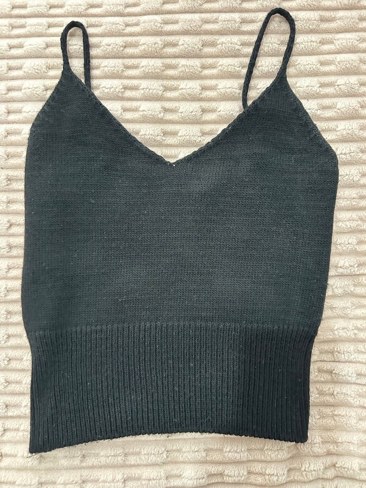 V yakalı, örme, siyah ve kolsuz bu atlet, rahat ve şık bir görünüm sunar. Günlük kullanım için uygundur ve normal boydadır.