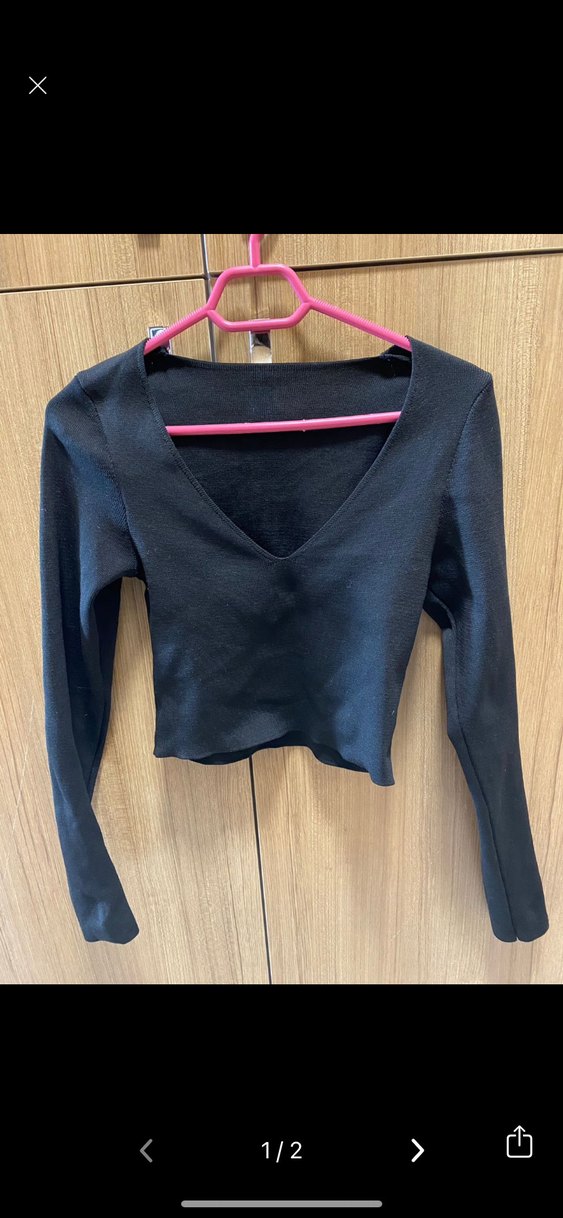 V yakalı, uzun kollu, siyah örme kadın bluz. Sentetik hediye geldi giyilmedi