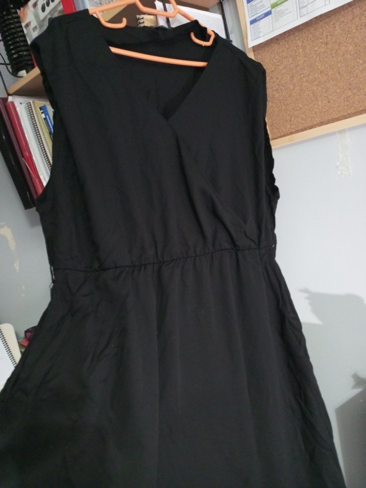 Siyah, V yakalı, drapeli hamilelere uygun Kolsuz, uzun ve rahat keten kumaştan yapılmıştır. Salaş kesimiyle minimalist, gotik tarzda günlük kullanıma uygundur.