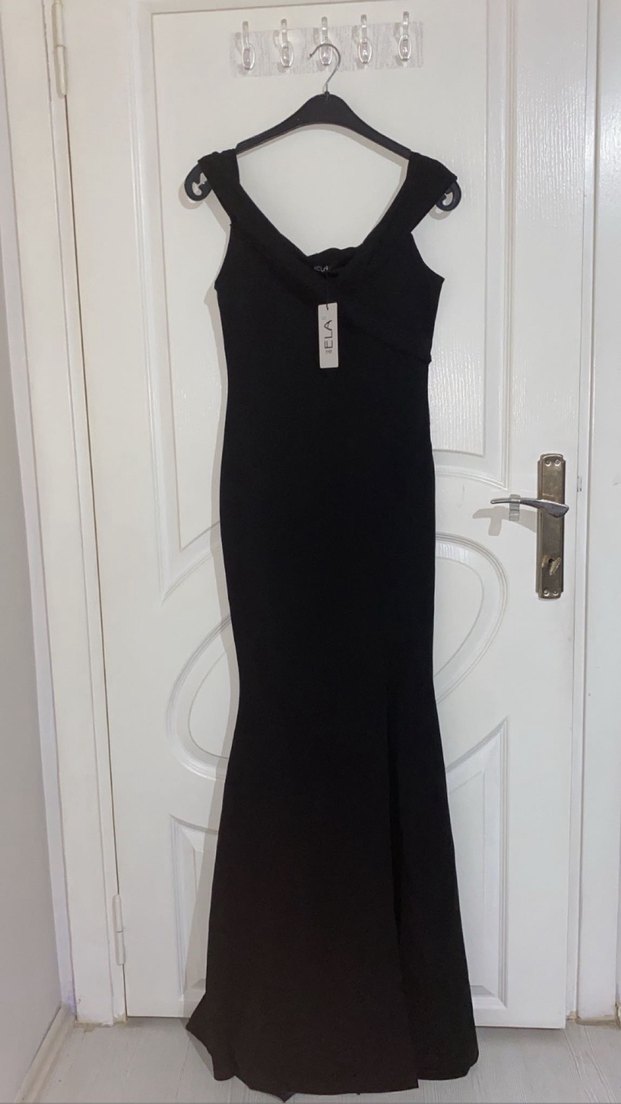 Siyah V Yakalı Uzun Kadın Balık Abiye Elbise