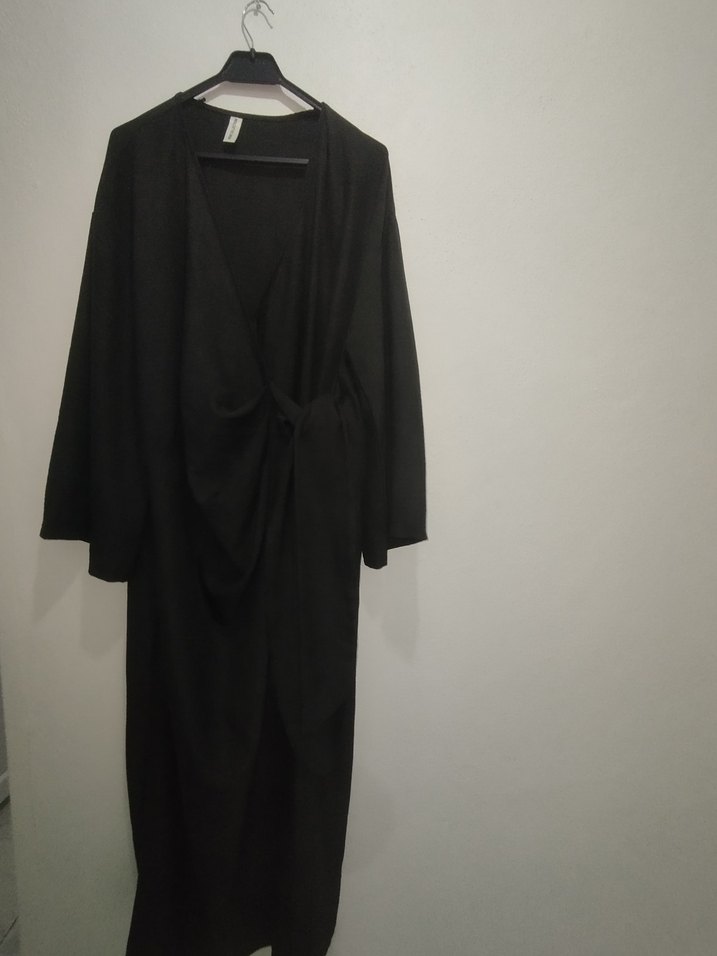 Siyah keten kumaştan, bol kesim, drapeli uzun kollu ve V yakalı minimal ve goth tarzda tunik. Günlük kullanıma uygundur.renk siyah görünüyor antrasit siyah karışımı