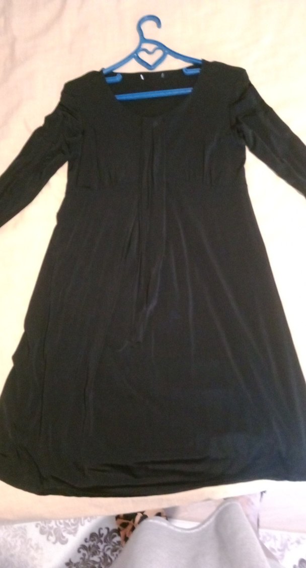 Siyah V Yakalı Uzun Kollu Hamile Elbisesi