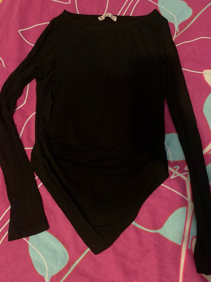 Siyah renkli, V yakalı ve uzun kollu bu kadın bluz, vücuda oturan kesimi ve yumuşak sentetik kumaşıyla parti ve sokak stili için uygundur. ✨