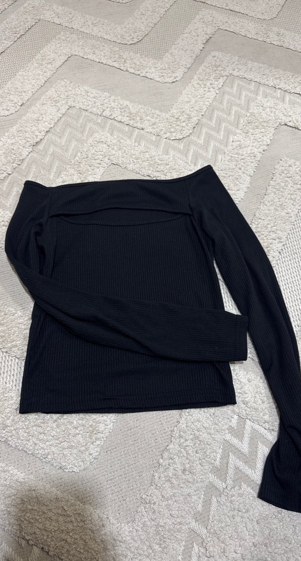 Siyah renkli, uzun kollu ve v yaka kesimli kadın bluz. Yumuşak örme sentetik kumaştan üretilmiştir, rahat sokak stili için uygundur. Önden pencereli