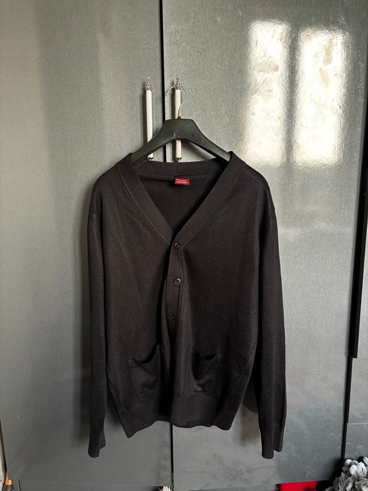 Siyah renkte, uzun kollu, V yakalı ve düğmeli kadın hırka. Yumuşak keten kumaştan, bol kesim ve normal midi boyda, günlük kullanım için uygun. Minimalist tarzda, önünde iki cep bulunur.