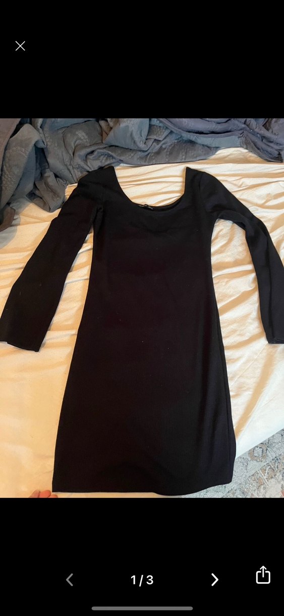 Siyah, v yaka, uzun kollu, midi boy, triko kumaştan yapılmış, drapeli ve minimalist gotik tarzda dar kesim elbise. Romantik akşamlar için uygun.