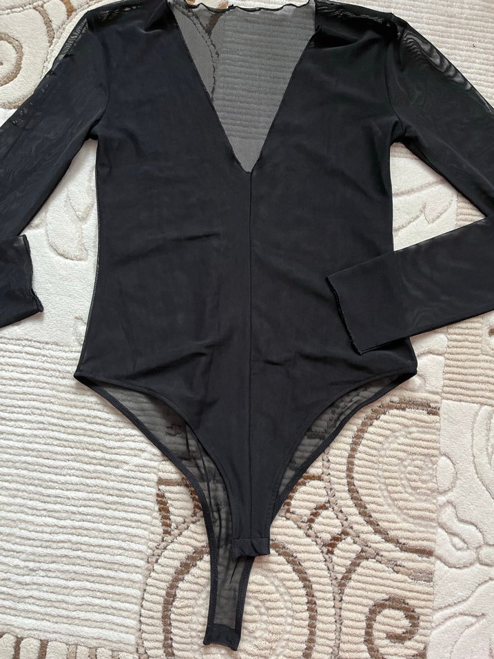 Siyah V Yakalı Uzun Kollu tül Bluz
