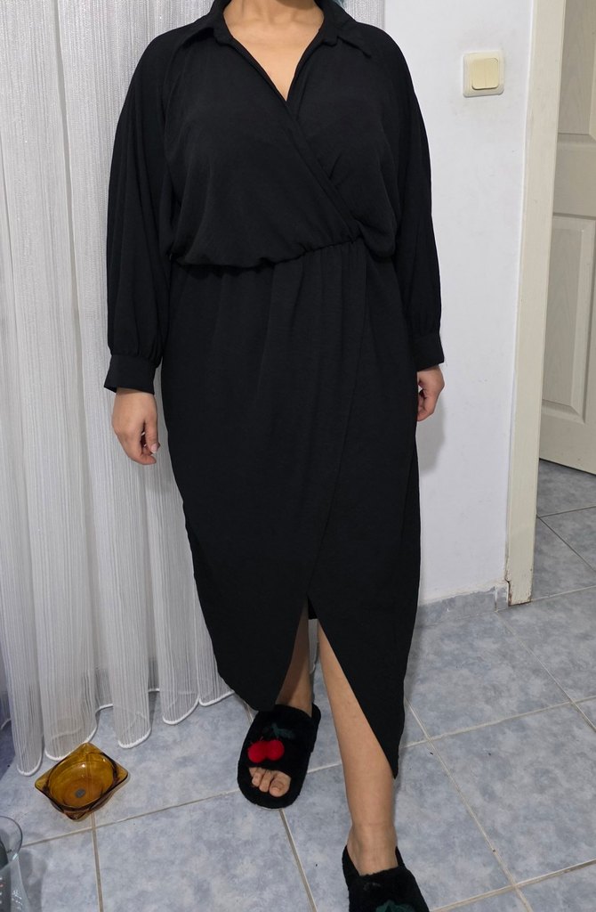 Siyah V Yakalı Uzun Salaş Elbise