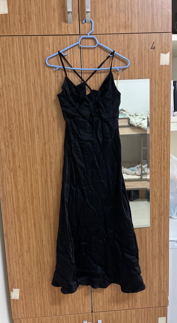 Bu siyah uzun elbise, ve ince askılı saten sırt detaylı elbise Small beden çok az kullanılmıştır ve temizdir Marka temsilidir