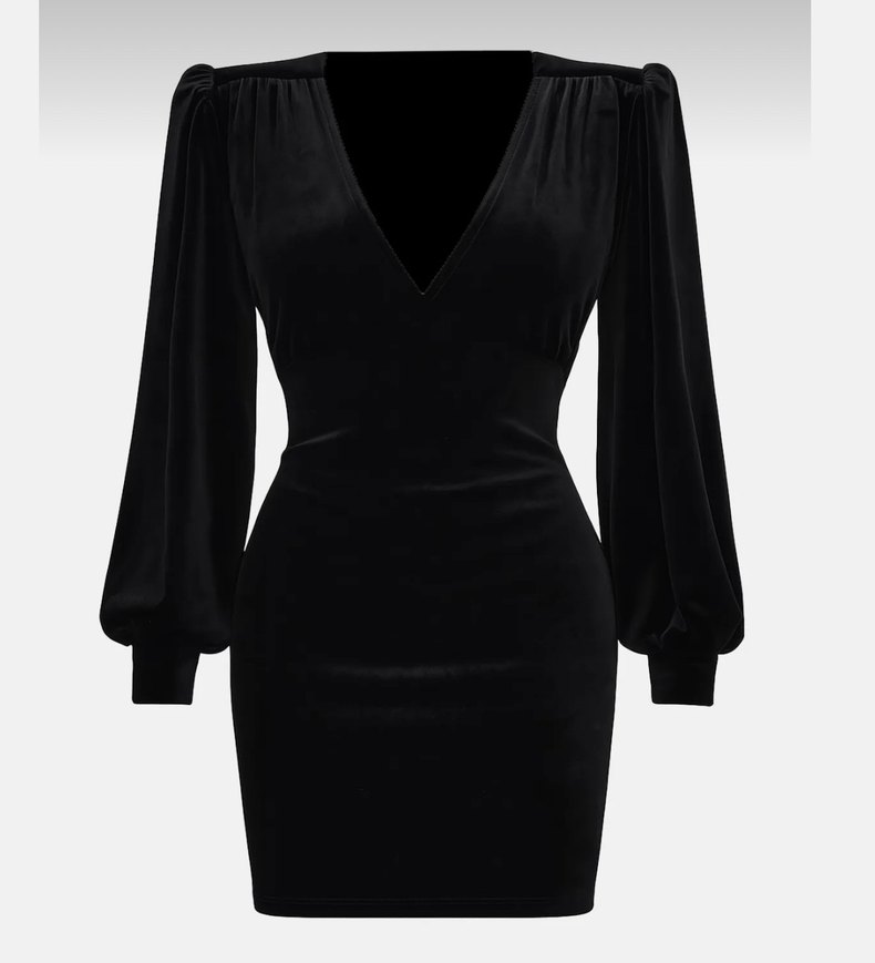 Siyah, v yakalı ve drapeli etiketli mini elbise