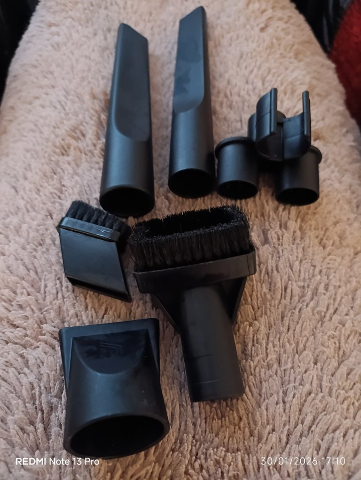 Çeşitli uçlar ve fırçalar içeren siyah vakum aparat seti. tüm modelleri ile uyumludur. herhangi bir problemi yok ihtiyaç fazlası diye satılık alıcısına hayırlı olsun NOT sayfamda bay, bayan, çocuk elbise ayak kabı vs ile elektronik eşya züccaciye, tuhafiye vs her türlü ürün bulacağınız geniş ürün yelpazesine sahibiz (2. el ve sıfır) ürünlere göz atınız. #çocuksweatshirt #tişort #bornoz #çocukelbise #elbise #kısakolelbise #gömlek #kadınsweatshirt #elbise #kaban #pantalon #mont #telefon #soğutucu #defter #kulaklık #kutu #yüzük #tespih #omuzçanta.#ayakkabı #Bot