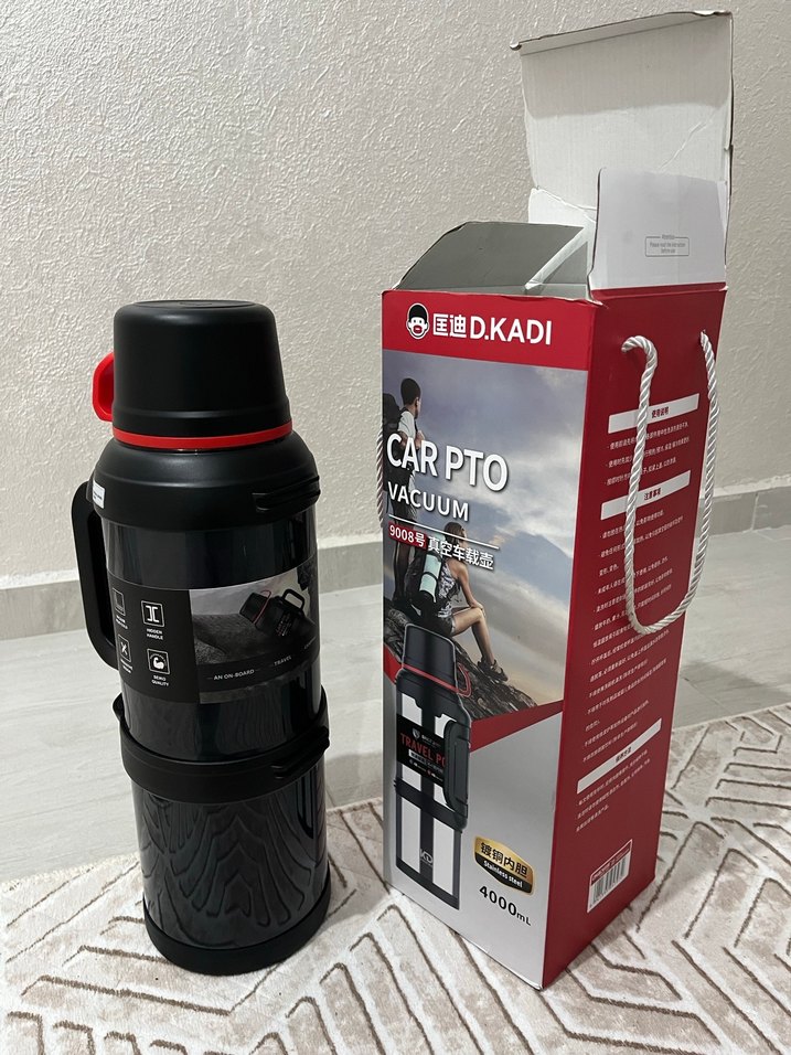 4 Litrelik 48 saat sıcak/soğuk kendinden (3) bardaklı açılır kapanır tutma yeri sağlam malzemeden yapılmıştır. Hiçbir şekilde açmadığınz takdirde akma damlama yapmaz. Uzun yollarda,kampta,piknikte vb aktivitelerde çok yer kaplamadan rahatlıkla kullanılır.Kendim yazın soğuk suyu içine doldurmuştum dibinde bir bardaklık kalmıştı 3 gün sonra içtiğimde bile hala %70 kadar soğuktu.