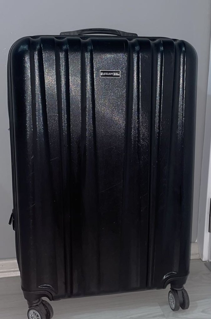 Tokalı tasarıma sahip şifreli siyah valiz, sade ve desensiz yüzeyiyle koyu gotik tarzda. Her kullanım için uygundur.
