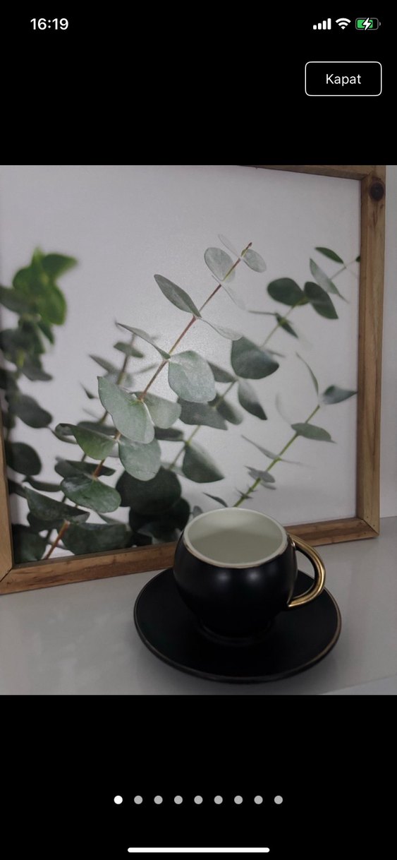 Altın kulplu siyah fincan, siyah tabak üzerinde servis için uygundur. ☕ 6 adet fiyatıdır.