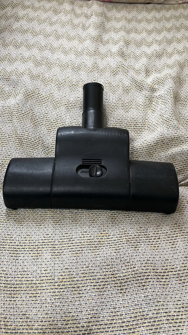 Merkezi ayar düğmeli siyah ve gri elektrikli süpürge aparatı, standart hortumlara uyumludur.