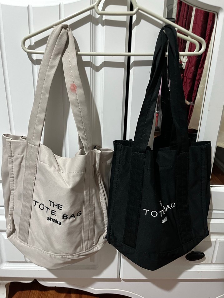Siyah ve krem renkli tote çanta