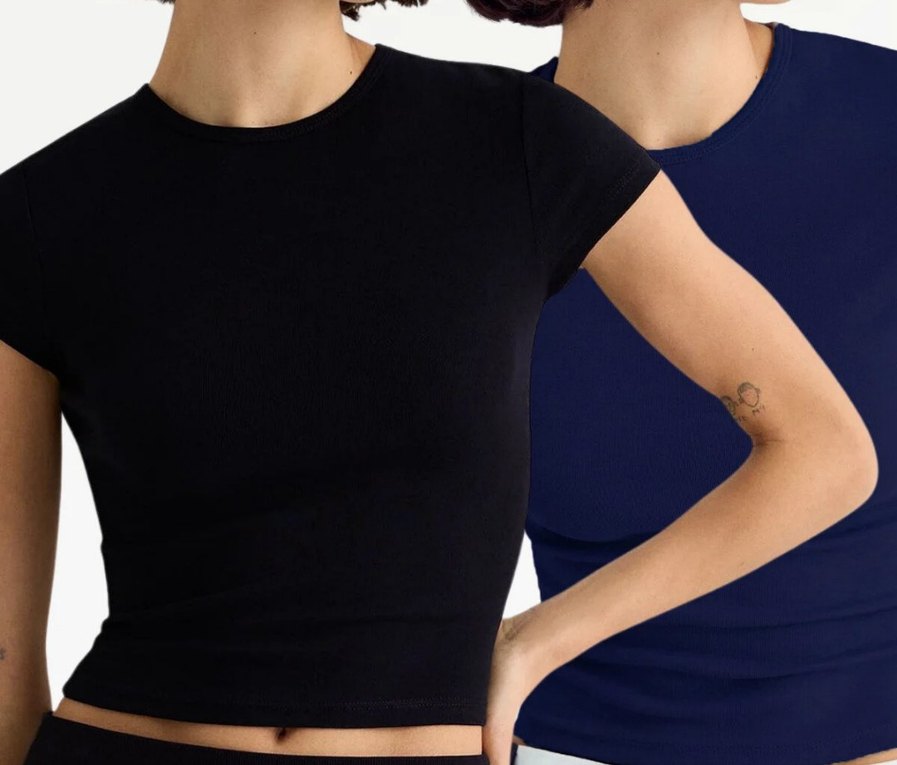 Siyah crop top, kısa kollu ve yuvarlak yakalı, vücuda oturan kesimi ve kısa boyuyla sportif ve sokak stiline uygundur. iki ürün gönderilecektir