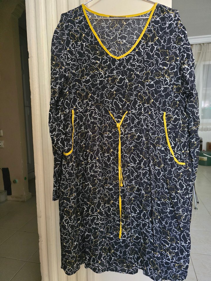 siyah ve sarı detaylı hamile elbisesi