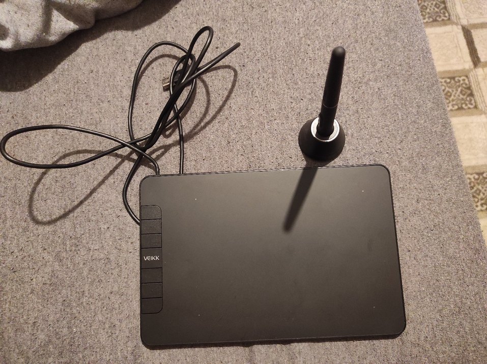 Siyah VEIKK grafik tablet, kalem ve USB kablosu ile birlikte, dijital çizim ve tasarım için uygundur.