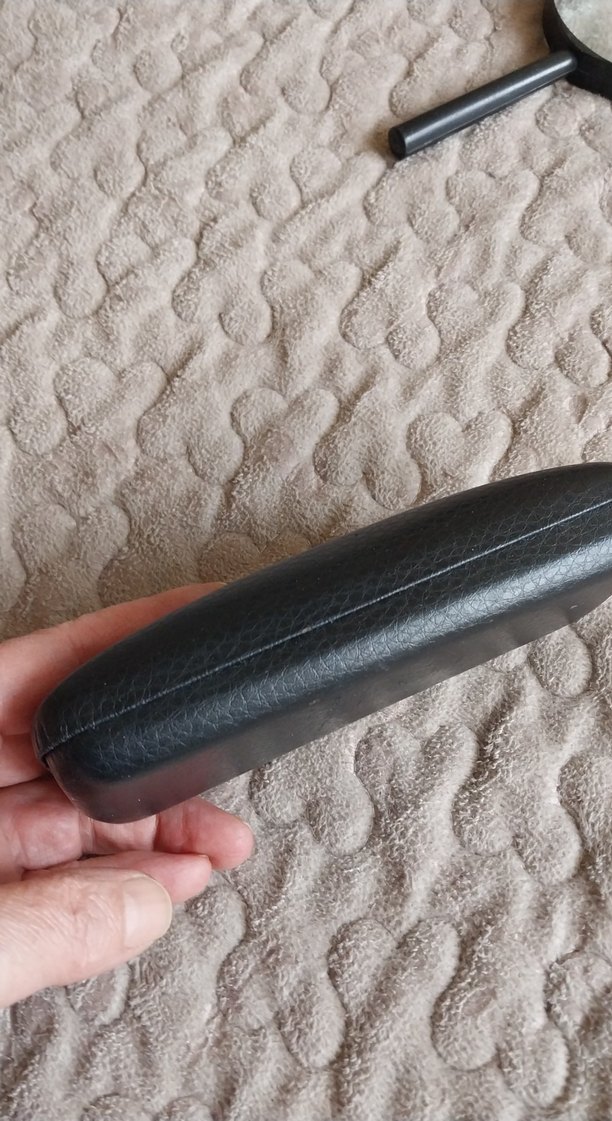 Minimalist tasarımlı, Velcro kapamalı siyah kadın gözlük kutusu. Üzerinde VERDURE markası kabartma olarak bulunur. ️1-2 noktasal kusuru var. Belli de olmuyor siyahta. Açma -kapama mekanizma sağlam. Marka benzer secildi.