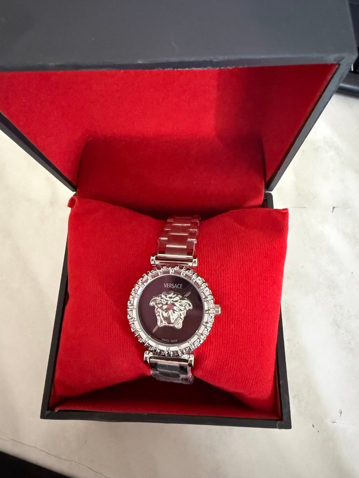Versace marka, siyah kadranlı ve tokalı gümüş tonlu bilezikli kadın saati, modern klasik tarzı şık detaylarla buluşturuyor. ⌚