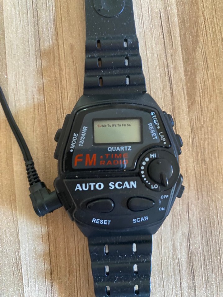 Quartz hareketli siyah vintage tarzda erkek kol saati. FM radyo, otomatik tarama, sıfırlama ve tarama düğmeleri bulunur. ⌚