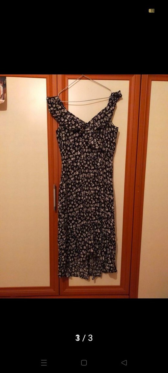 Bu siyah bohem midi elbise, straplez yaka ve fırfır detaylara sahip dar kesimdir. Yumuşak sentetik kumaştan, vintage çiçekli batik deseniyle günlük kullanıma uygundur.