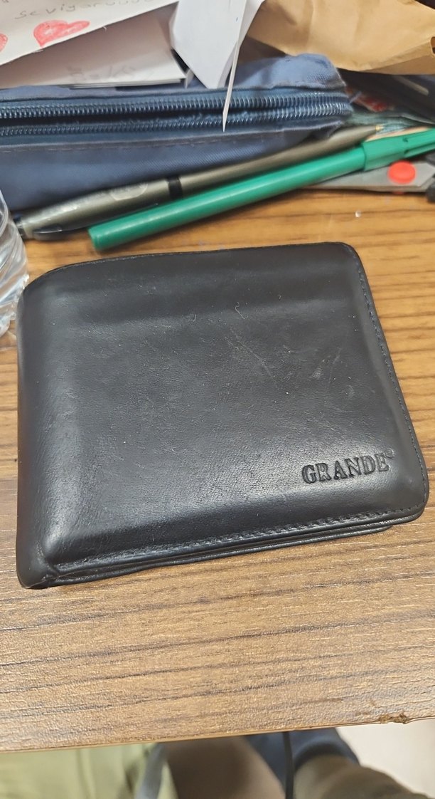 Siyah vintage erkek cüzdanı, üzerinde GRANDE baskılı klasik koyu renkte şık tasarım sunar. Zamansız görünüm ve kullanışlıdır.
