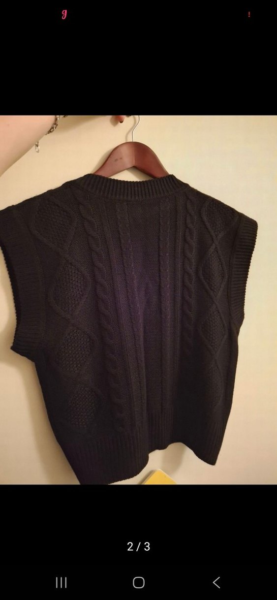 Siyah, örgü, kolsuz, bisiklet yaka, midi uzunlukta, süveter. Rahat ve desensiz Annemindi m bedene daha gğzel olucaktır ben xs/s bedenim