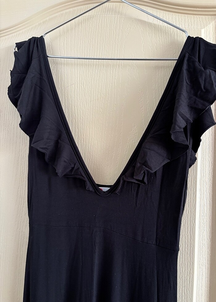 Cool&Sexy markalı Siyah volanlı maxi boy elbise penye kumaş yazın asla rahatsız etmez s beden uyumludur beden uymadığı için satışta sayılı giyildi tertemiz dolap bekliyor boyu omuzdan itibaren 1.33 cm dir
