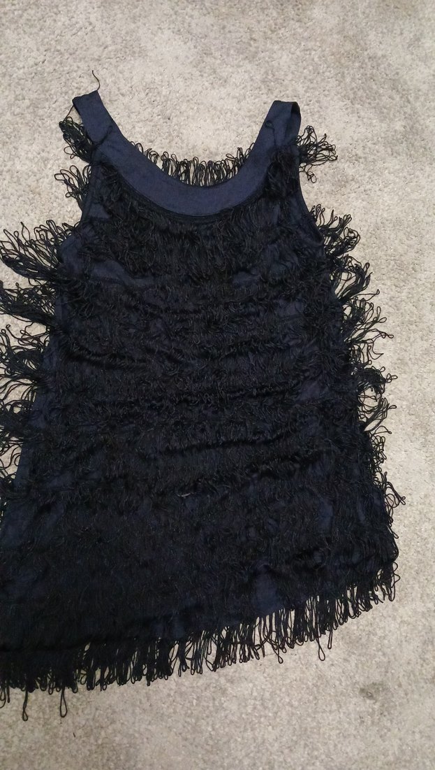 Siyah, kolsuz, V yakalı, püsküllü, volan detaylı ve midi boyda, gotik tarzda şık bir abiye elbisedir. Fitted kesimiyle dikkat çeker.