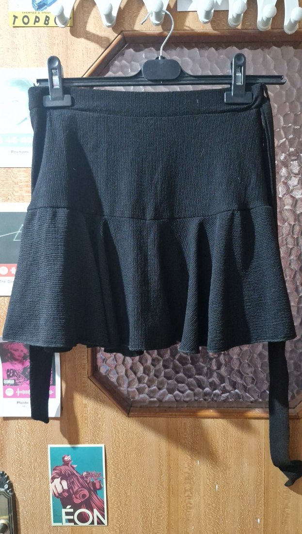 Siyah renkte, sentetik kumaştan, volan detaylı ve bol kesim midi uzunluğunda gotik stil etek. Günlük kullanıma uygundur.