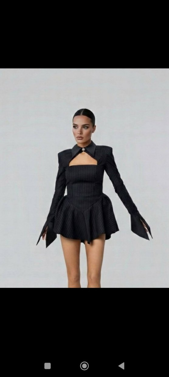 Siyah volanlı taş düğmeli