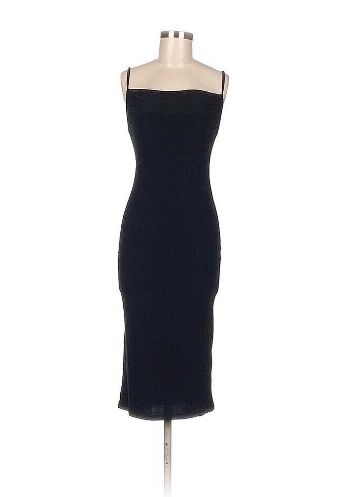 siyah vücuda oturan degaje yaka midi elbise