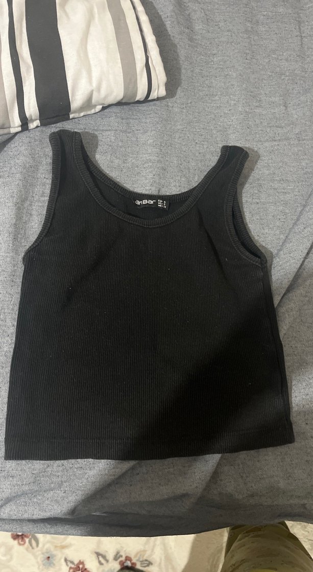 Vücuda oturan, yuvarlak yakalı, yumuşak sentetik kumaştan yapılmış siyah kolsuz atlet. Sokak modası ve spor tarzına uygundur.