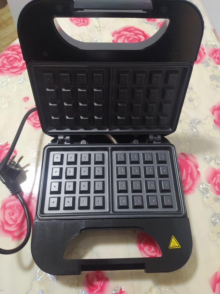 Yapışmaz plakaları ile kolay pişirme ve temizlik sağlayan siyah waffle ve sandviç makinesi. Kompakt tasarımlı, tutma saplı.