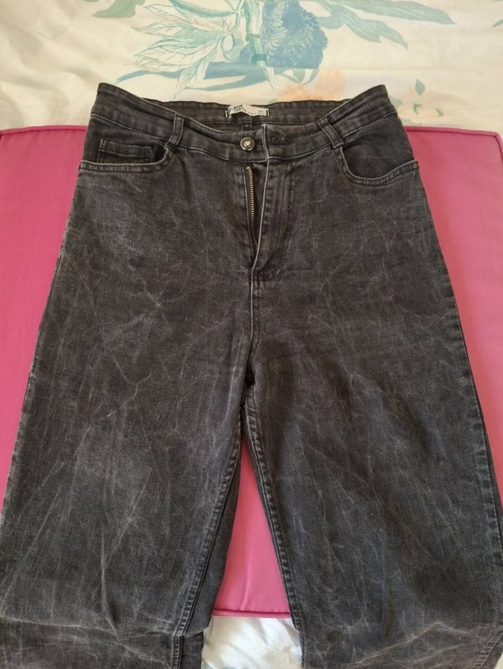Gri, orta boy, sade ve dar kesim kadın denim pantolon. Sokak modasına uygun, günlük kullanıma ideal, rahat ve şık görünümlü.
