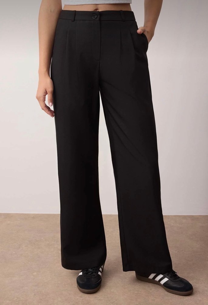 Kumaştan kaynaklı önü ve arkasında yansımalar var kir ya da leke değildir. Siyah renkli, bol paça pantolon. Günlük kombinler için idealdir. Bel 36 cm boy 96 cm.